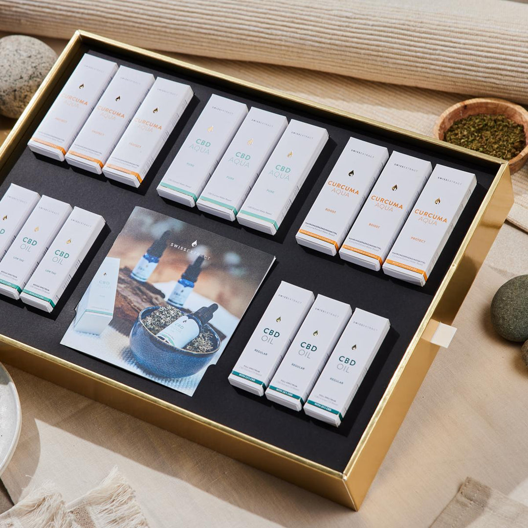 To ensure that our products are shown to their best advantage, we have an elegant sales box. This includes an image brochure and a selection of the current SwissExtract range.