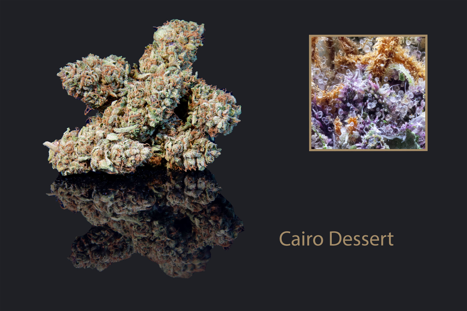 Cairo Dessert ist eine Kreuzung aus einem selektierten Fruit Tartar Weibchen von Aficionado French Connection und einem Sinai Männchen von The Real Seed Company. Die Züchtung ist durch ein europäisches Züchter Kollektiv entstanden.