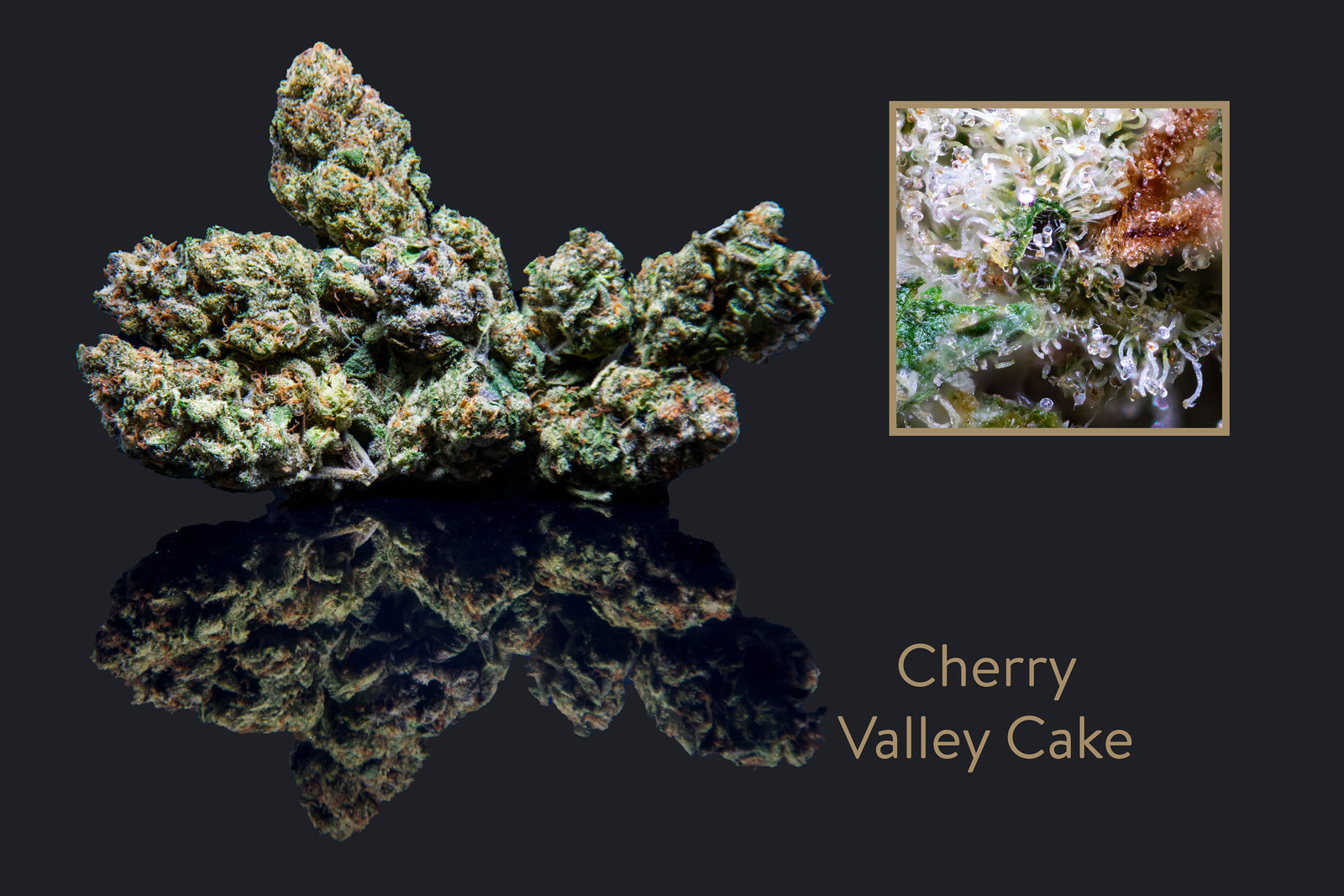 Cherry Valley Cake ist eine Kreuzung aus einer selektierten weiblichen Cherry Valley Dog und Jiffy Cake. Das Terpenprofil von Cherry Valley Cake ist ausgezeichnet. Ein schwerer, süsslich-würziger Duft nach Kuchen mit einer betörenden Note von vergorener Kirsche.