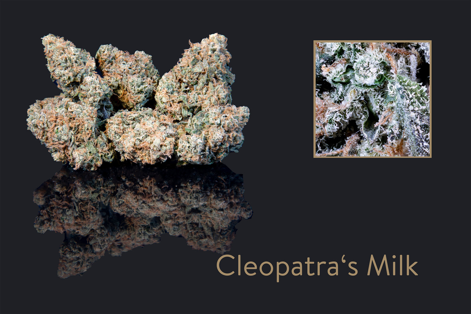 Cleopatras Milk ist eine Züchtung eines europäischen Kollektivs und entstand aus der Kreuzung von Papaya Punch und Sinai – eine traditionelle ägyptische Landrasse, die auf der Sinai-Halbinsel von der lokalen Beduinenbevölkerung kultiviert wird. Die Blüten dieser Genetik sind dunkelgrün mit lila Akzenten und mit einer dichten Trichom Schicht bedeckt.